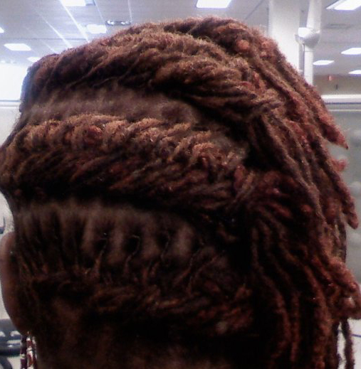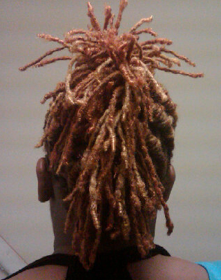 Quanna is rockin’ her red colored dreadlocks with fierceness! She keeps her well manicured and styled dreads in pinned up trendy updo hairstyles. Dreads are very beautiful and a natural hairstyle that really makes a statement: “Naturally designed locked in beauty”!